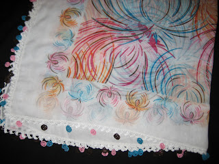 Bu sene Turkiye’deyken annemin bir komsusu Kaynarca’da ufacik bir yazma satan dukkan oldugunu, cok guzel ve baska yerde olmayan cesitler sattigindan bahsedince durmadik, kalktik gittik beraber. Bu seneki ana elisi ugrasim bunlarin kenarlarini oyalamak olacak. Ilk ornek bu komsumuzdan hediye bana, ikincisini ise ben yaptim. Renkler tam gercekci cikmamis ama guzel birsey oldu bence tabi; ufak halkalara acmis gul sekli verilip tulbent kenarina ekleniyor.