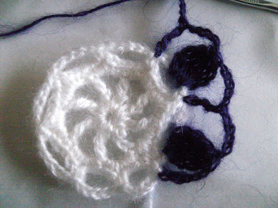7.aşama:1.fıstıgın üzerinden 8 zincirle yukarı cıkıyoruz.(Bu sırayı beyaz iple örerek gösterdim.)