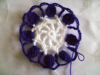 5.aşama:Şimdi zincirli boşluktan 6 zincir çekerek diğer zincirli boşluga geçiyoruz.Bu şekilde tum halkayı çepeçevre zincirle birleştirmiş oluyoruz.son zinciri ilk zincire batarak birleştiriyoruz.