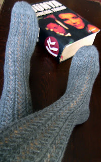 dan bir modeli sizin ve kendim için denedim.Yine dizaltı olarak ördüğüm bu modeli 3 no 4 lü çorap şişi ile çıkardım.Diğerinden farklı olarak bu model, yukarıdan parmak ucuna doğru örülüyor ve baldırlardan kesmeler yapılarak daraltılıyor.Biraz sayılara dikkat edilerek örül-