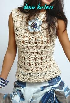 Yazlık firkete işi merserize bluz örneği Firkete ile örülmüş örgü BLUZ modeli MERSERİZE ÖRGÜ BLUZ