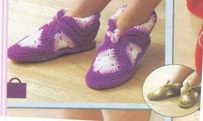 kare motifler birleştirilerek kolay örülmüş patik modelleri