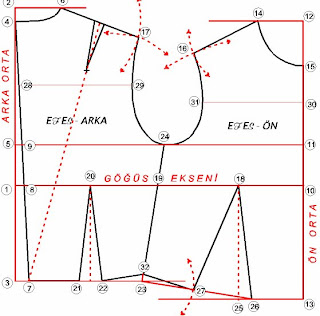 geçen yatay çizgi arka omuz hattını, 5 yatay çizgisi koltuk altı hattını, 3 den çıkan yatay