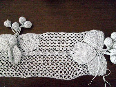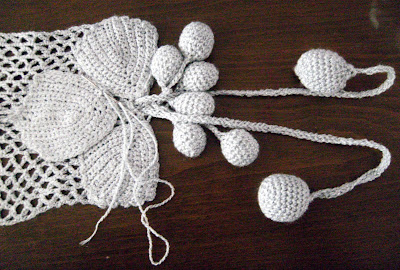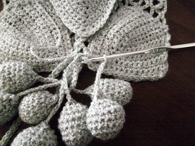 Atkı uçlarına 6şar tane top örüyoruz ve içlerini elyafla doldurup kapatıp,zincir çekerek atkı uçlarına yaprakların arasına gelecek şekılde birleştiriyorsunuz.