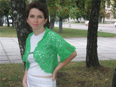Yeşil merserize motiflerden kısa kol bolero modeli